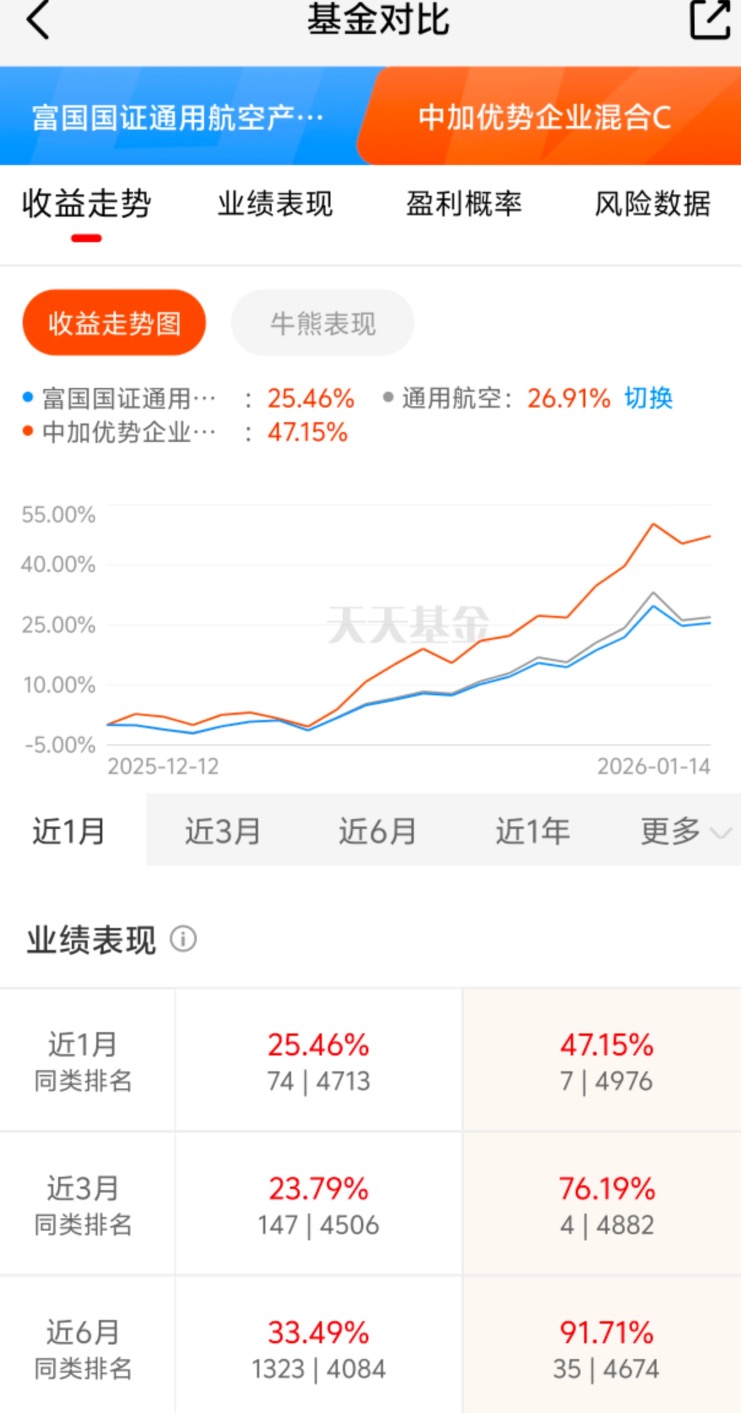 航天航空板块持续回调,赶紧看看家底:我的$中加优势企业混合C$ 近一个月涨超47%,而富国国证通用航空近一个月收益涨幅32.15%。在震荡市里,能持续创造阿尔法的才是好基。
