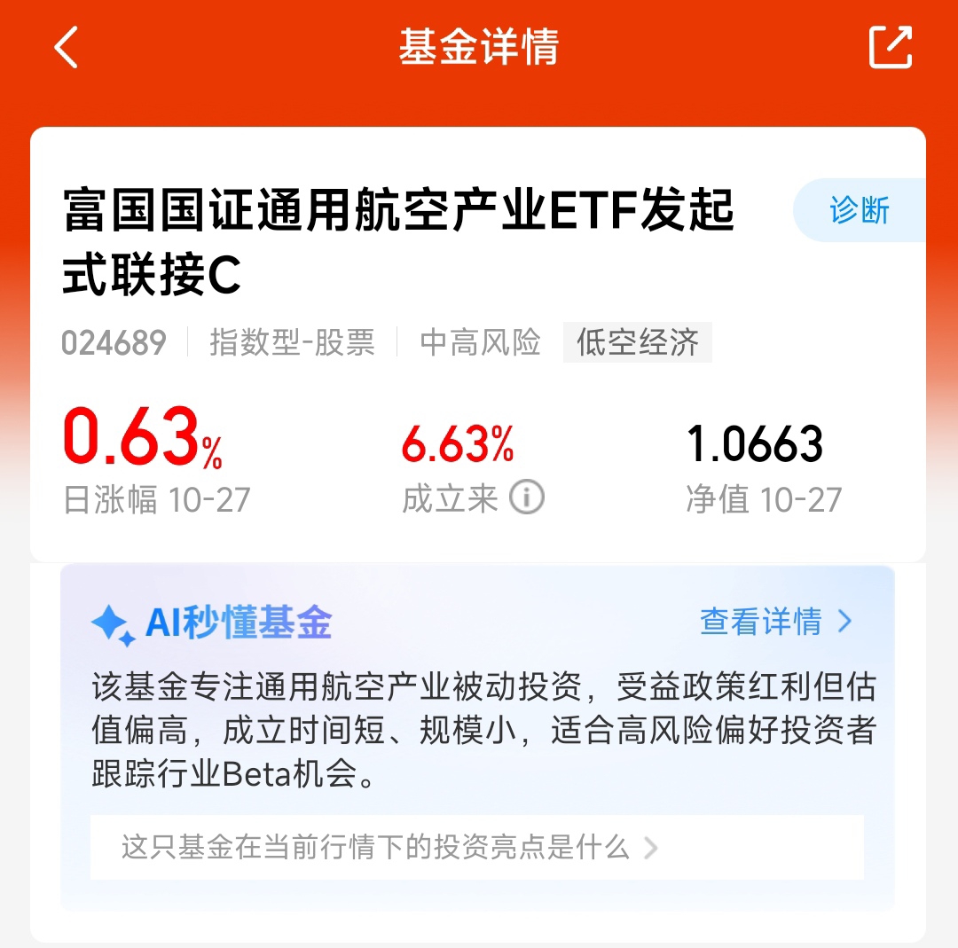 $富国国证通用航空产业ETF发起式联接C$ 这款产品通过场外指数基金的形式,让您无需挑选个股,即可一键买入通用航空产业链上的核心公司,精准覆盖航空装备这一价值环节。我们正步入一个从“制造大国”迈向“航空强国”的新时代,低空经济的商业化浪潮与国防安全的战略需求,共同为航空装备产业注入了强大的成长动力。