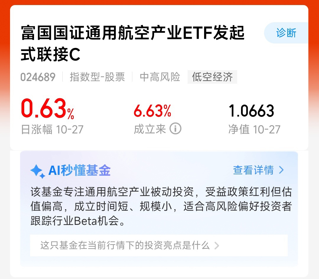 在此市场环境下,$富国国证通用航空产业ETF发起式联接C$ 为投资者提供了一个精准布局该细分赛道的工具。作为一只场外股票型指数基金,它紧密跟踪国证通用航空产业指数,其投资组合高度聚焦于航空装备这一产业链核心环节。通用航空产业不仅是高端制造业皇冠上的明珠,更是科技创新与国家安全战略紧密交织的领域。随着低空经济政策的逐步放开、空域管理的持续优化以及国防现代化建设的深入推进,整个产业链正迎来前所未有的发展机遇。
