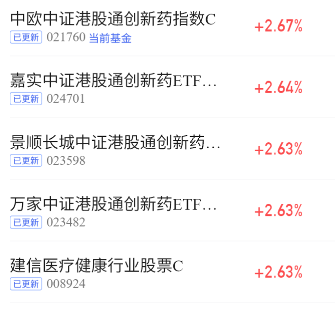 港股创新药板块强势拉升,中欧中证港股通创新药C涨2.67%!