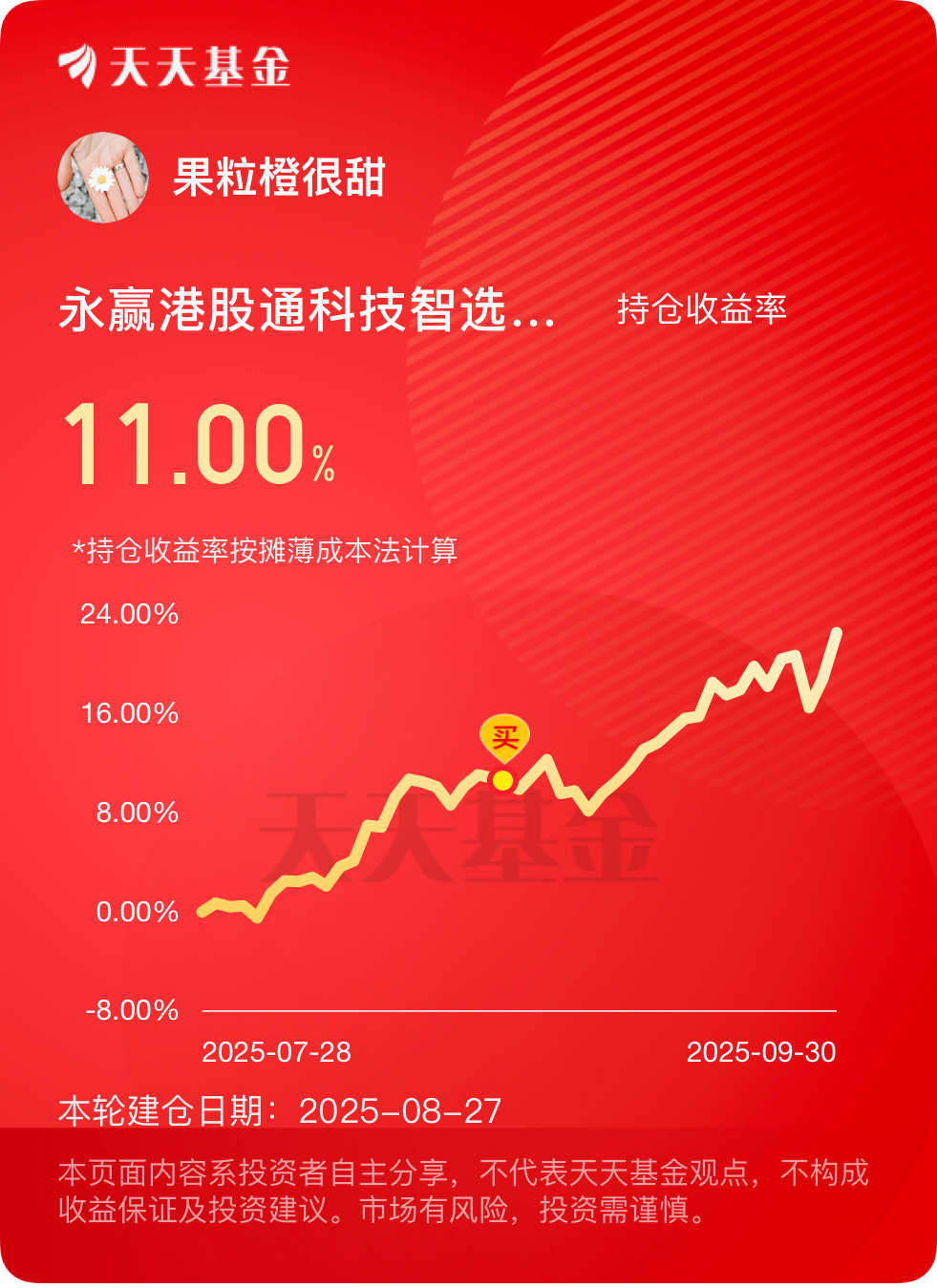 港股最近挺给力的,还是我有眼光$永赢港股通科技智选混合发起C$