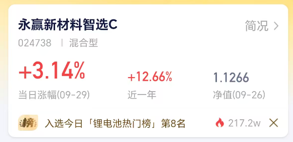 随着技术瓶颈突破与商业化路径清晰,固态电池正从实验室快速走向市场。永赢新材料智选混合发起C以专业视角锚定核心环节,为投资者打造了分享万亿级能源变革红利的优质通道,当下或是布局这一高成长赛道的良机。#永赢每天有惊喜#
