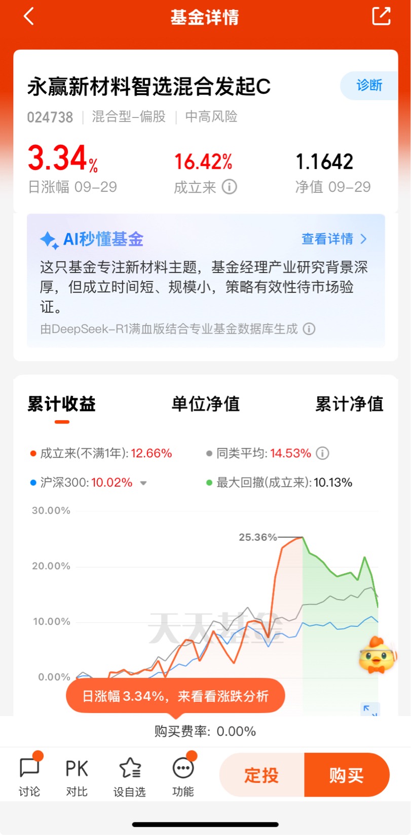 #老登股VS小登股!业内大佬“激辩”# 国家将新材料列为战略性新兴产业,政策覆盖研发补贴、税收优惠、中试平台建设等,同时新能源、电子信息、航空航天等下游产业需求旺盛,为新材料提供广阔市场空间;$永赢新材料智选混合发起C$ 今天大涨3.34%,成立两个月收益16.42%,人工智能、量子计算等技术融入材料研发,推动从传统“试错法”向智能化、精准化转变,加速新材料开发周期。