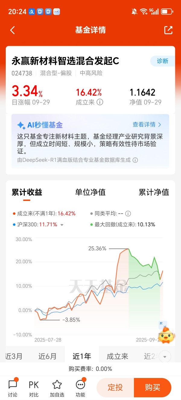 $永赢新材料智选混合发起C$新成立不久更有动力,今晚更新涨幅3.34%,成立以来