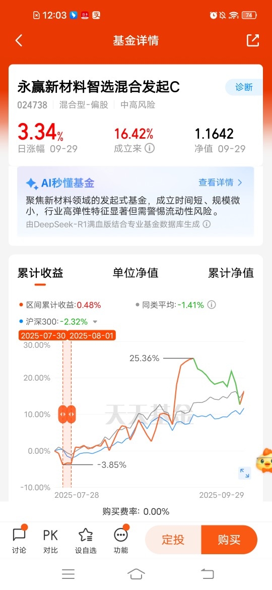 $永赢新材料智选混合发起C$新成立不久更有动力,昨天涨幅3.34%,成立以来累积