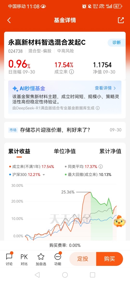 $永赢新材料智选混合发起C$节前最后一个交易日上涨+0.96%,成立以来涨幅+1