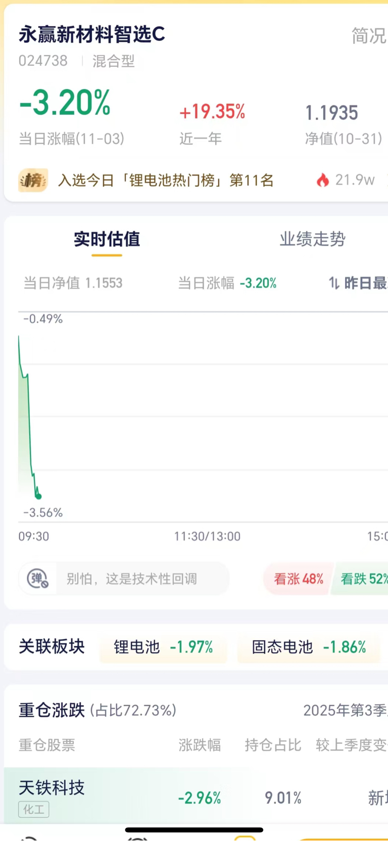 $永赢新材料智选混合发起C(OTCFUND|024738)$ 跌起来是真是无敌,起步就2个点,涨起来就是零点几,这是什么神基,换个人经理吧,做一次人吧