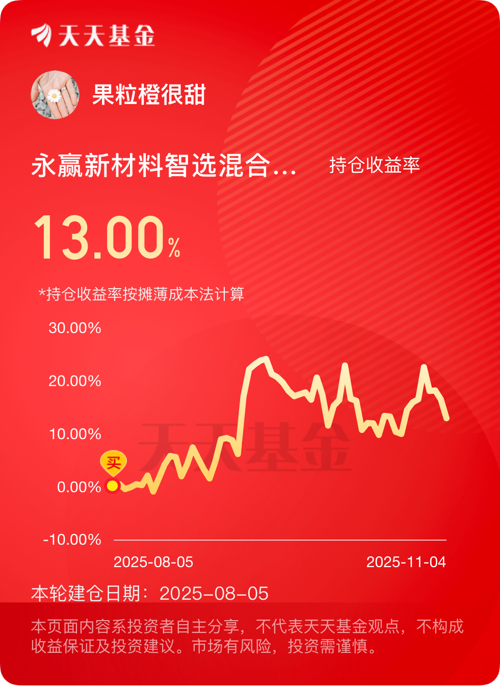 现在跌是暂时的,未来涨是必然的,保持好心态。$永赢新材料智选混合发起C$