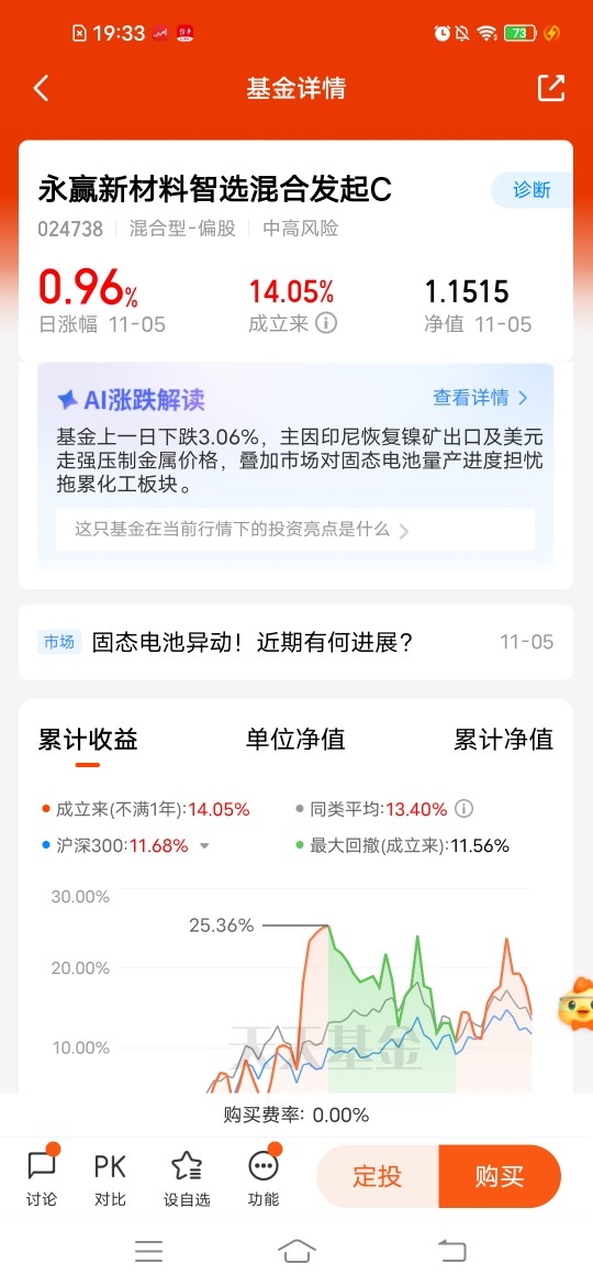 $永赢新材料智选混合发起C$趁着市场调整后,布局更有动力,今晚更新涨幅0.96%