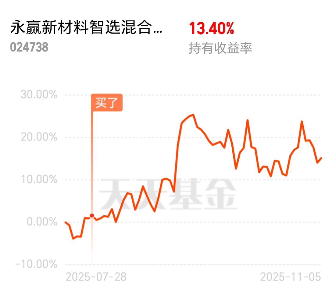 $永赢新材料智选混合发起C$调整后开始上涨,今天考虑再加点