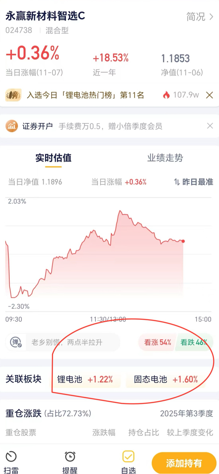 $永赢新材料智选混合发起C(OTCFUND|024738)$ 兄弟你这是乌鸦坐飞机吗?涨起来慢吞吞,跌起来不眨眼,新材料板块都涨一个多点!更别说电池板块和锂电池,固态电池了,买过最差的一支基