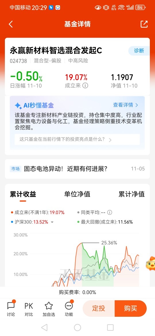 目前的市场情况还是挺不错的,这里应该也能够跟着涨起来,$永赢新材料智选混合发起C