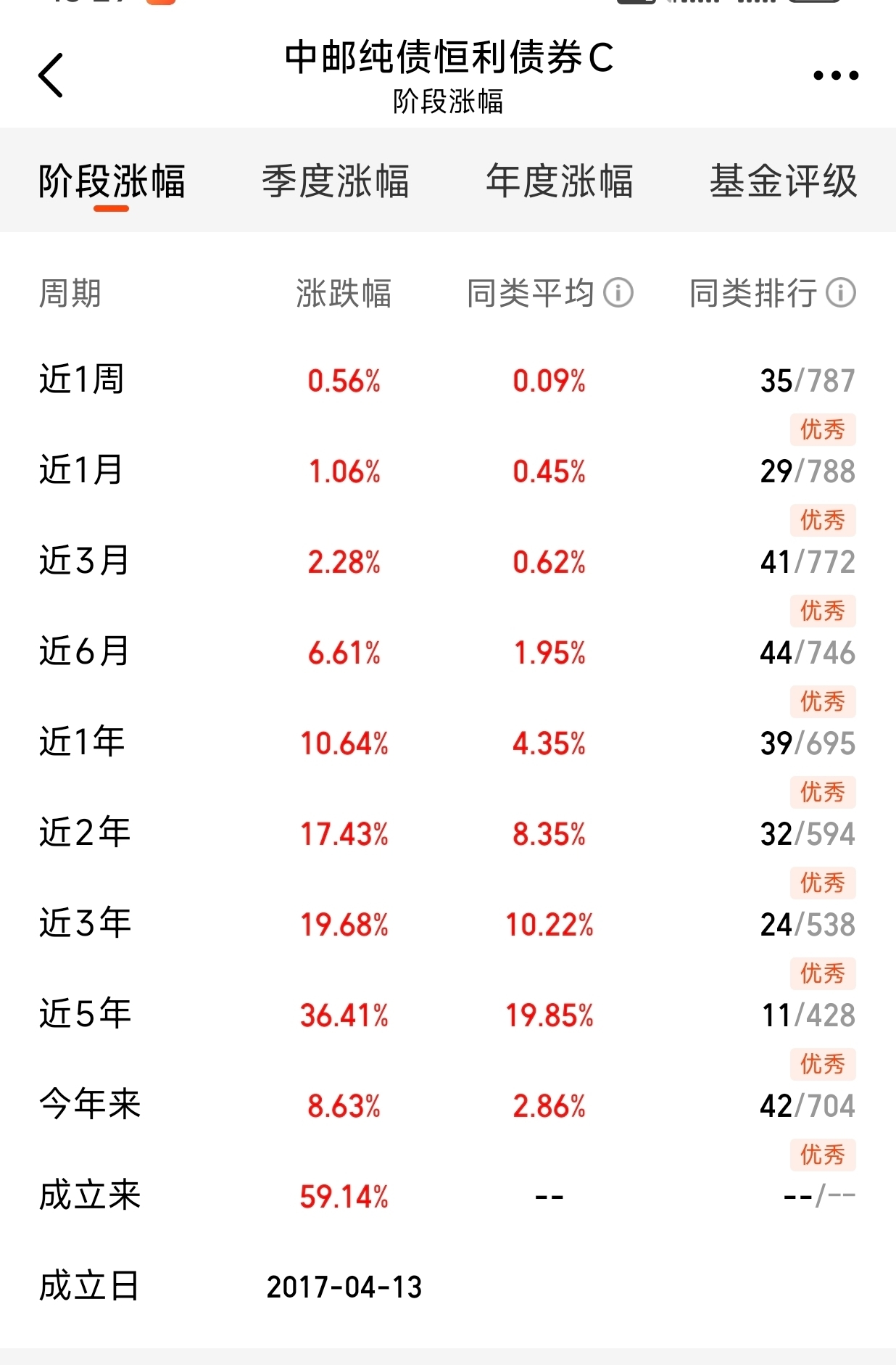 我在选择了“存储芯片”稳健投资者,主要还是配置混债,$中邮纯债恒利债券C$昨天3