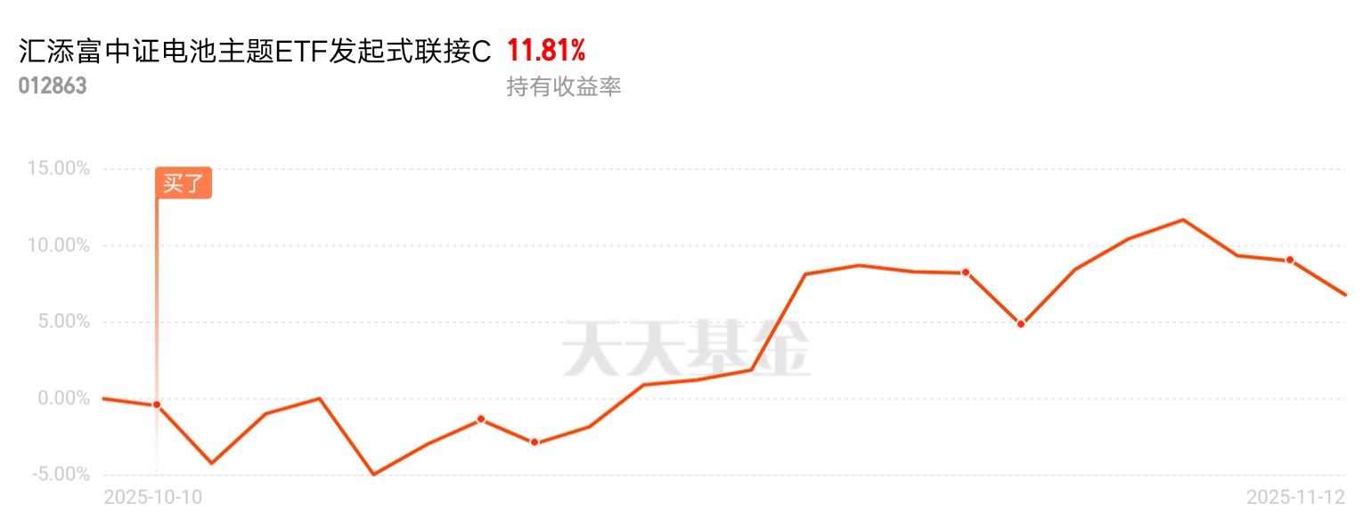 $汇添富中证电池主题ETF发起式联接C$行情回升,电池表现不错,跟紧了。