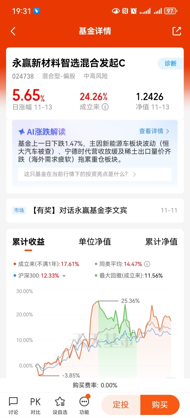 $永赢新材料智选混合发起C$今天涨幅+5.65%,成立没多久近三个月涨幅已经高达