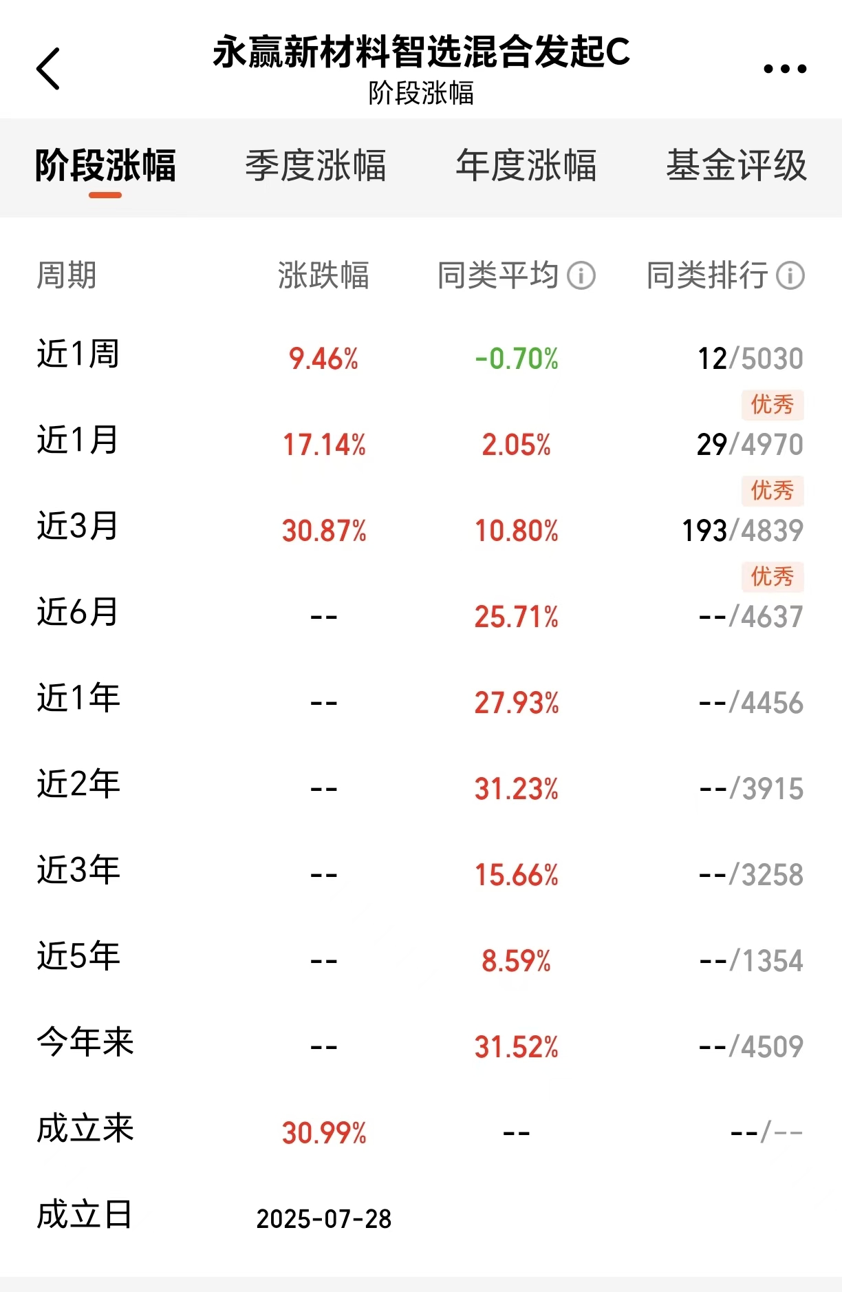 永赢新材料智选混合发起C(A类:024737 C类:024738)精准把握固态电池产业链的发展机遇,业绩表现十分出色。作为发行不久的新基,它的业绩爆发力和稳定性都令人瞩目,近1周反弹上涨9.46%,近1月上涨17.14%,近三月上涨30.87%,成立以来取得了30.99%的收益。基金围绕材料创新、制造工艺突破及下游应用拓展三大核心环节进行布局,全面覆盖固态电池产业链的关键领域,凭借前瞻的布局思路,成功捕捉到产业发展的红利,为投资者带来了丰厚回报。