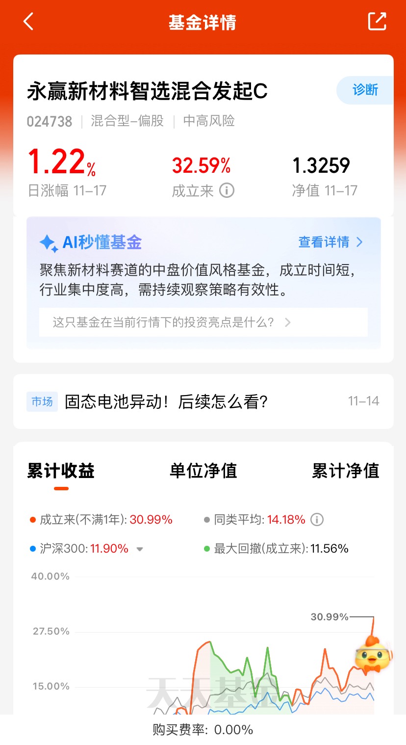 #科技小登大揭秘# 国家对新材料产业的支持力度不断加大,叠加新能源、半导体、生物医药等下游行业快速发展,对新材料的需求持续增长,推动板块内企业业绩改善,进一步吸引资金流入。$永赢新材料智选混合发起C$ 继前两个交易日大涨超过11个点今天继续上涨1.22%,成立三个多月涨幅超过32个点业绩优秀,新材料行业整体处于快速发展阶段,永赢新材料紧跟政策导向、加强技术创新和产业链协同,有望在细分领域取得突破。