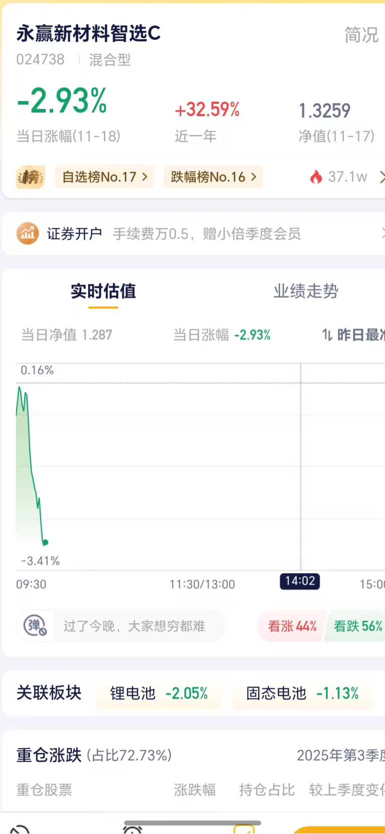$永赢新材料智选混合发起C(OTCFUND|024738)$ 昨天个股涨那么多才一个点,今天跌一点就跌3个多点,吃人啊、这