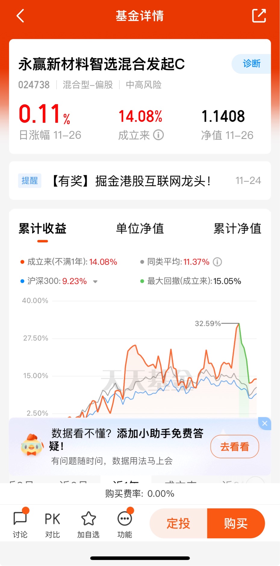 $永赢新材料智选混合发起C$昨天收0.11%,近3个月收7.29%,表现优秀!作