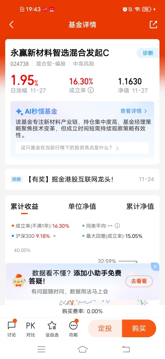 $永赢新材料智选混合发起C$今晚更新涨幅1.95%,近三个月涨幅11.55%,成