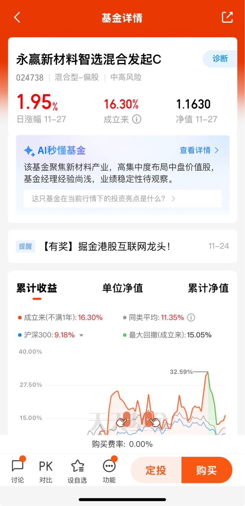 #六部门印发促消费新方案!你看好哪个方向?# 资本市场对新材料企业关注度提升,科创板已汇聚51家新材料企业,覆盖半导体材料、碳纤维、锂电材料等领域,企业通过上市加速产能扩张与技术迭代。$永赢新材料智选混合发起C$ 昨天上涨1.95%大幅跑赢今天的大盘指数,近三个月收益11.55%,成立四个月涨幅超过16个点,整体业绩不错;新材料在新能源、电子信息、航空航天、生物医疗等领域的应用不断深化,为产业升级提供支撑。