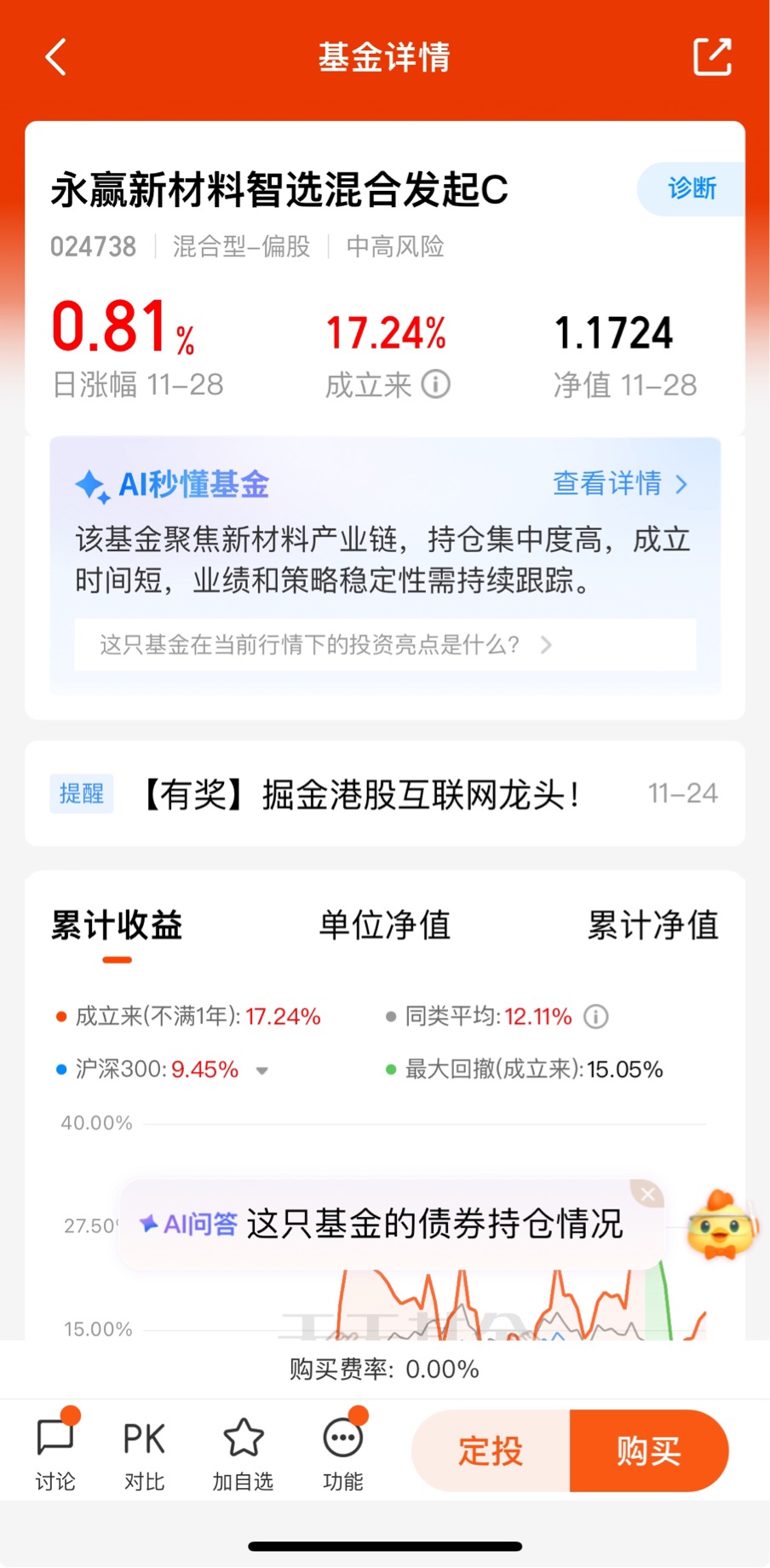 $永赢新材料智选混合发起C$12月要持续发力哈,近一周收4.08%,近3个月收1