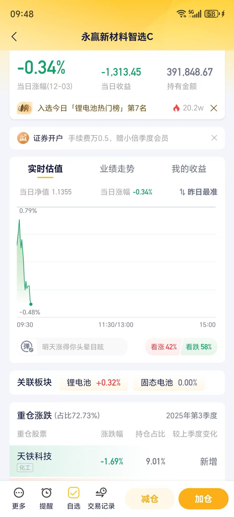 $永赢新材料智选混合发起C(OTCFUND|024738)$ 经理,你眼瞎了吗?你的股票每天都是高开低走,平开低走,低开低走,一个星期跌4天,是怎么好意思收管理费的,每天一打开就是绿油油的一片,还请水军在评论区刷好评,你纯恶心人