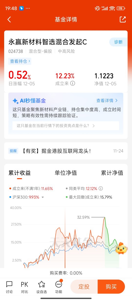 看好这只$永赢新材料智选混合发起C$新基整体处于低估低位阶段,今晚拉涨0.52%