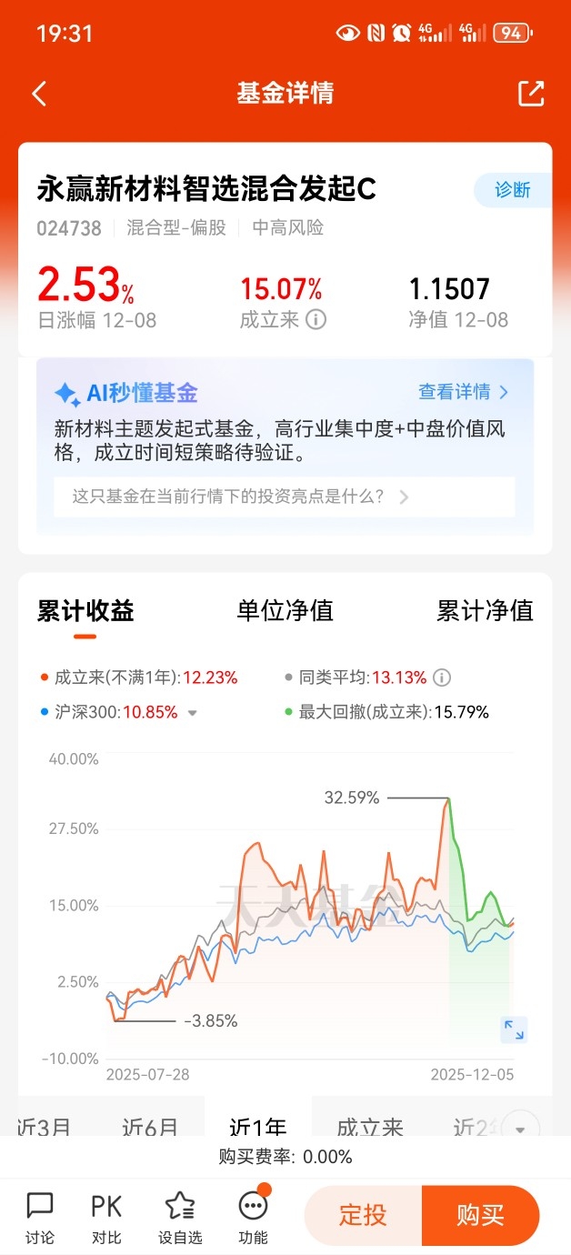 $永赢新材料智选混合发起C$今天涨幅+2.53%,连续两天上涨。聚焦固态电池领域