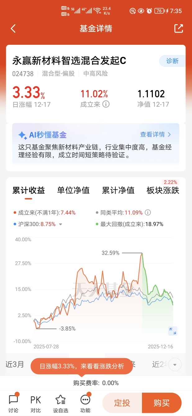 开始反弹了,$永赢新材料智选混合发起C$这波行情不能错过,今天涨幅3.33%,后