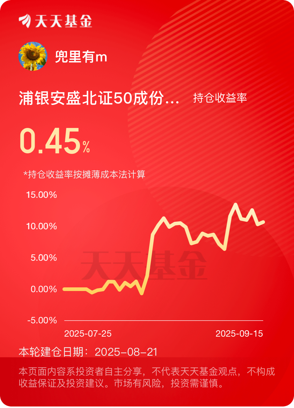 $浦银安盛北证50成份指数C$当前慢牛行情不改,适合配置北证50这种有弹性的成长