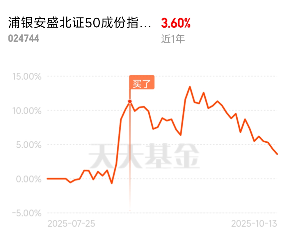 浦银安盛北证50今日逆势涨,涨能跟上、跌得少,科技赛道全覆盖,低费率不限额,7天免赎回费。$浦银安盛北证50成份指数C$