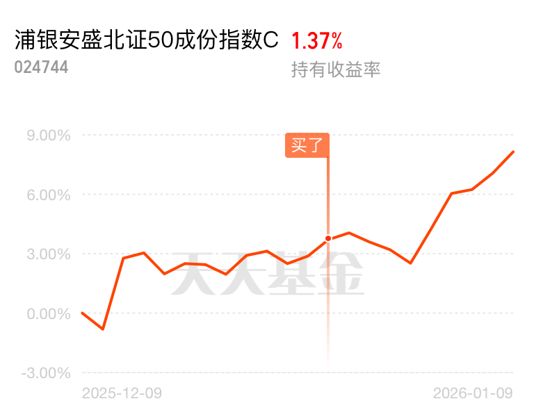 最火的科技赛道在北证50中均有映射,商业航天、创新药、光模块都在北交所池子里,不限额的浦银安盛北证50跟踪误差小。$浦银安盛北证50成份指数A$ $浦银安盛北证50成份指数C$