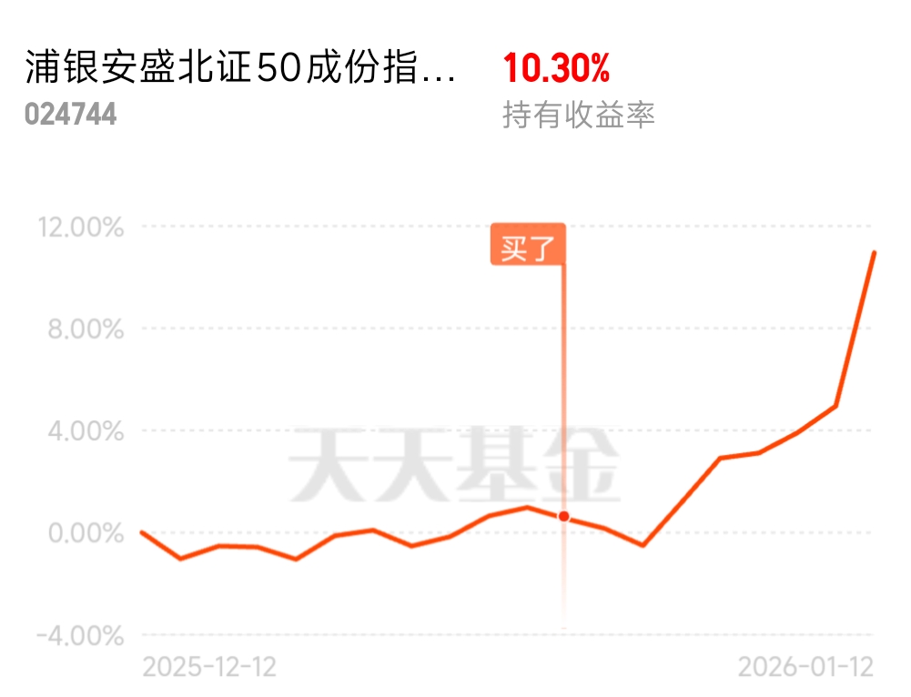 浦银安盛北证50C也太能打了!今天继续走高还跑赢指数,跟踪精度直接拉满,持仓体验