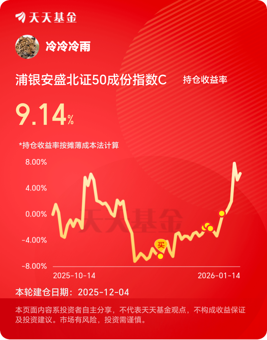 $浦银安盛北证50成份指数C$ 涨势不停!北证50估值低+成长猛,30cm涨跌幅优势凸显,浦银额度充足,上车#商业航天探底回升 要上车吗?# #晒收益#