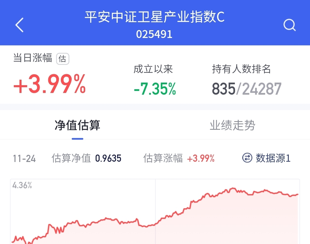 今天市场大反弹了,午后全部翻红,卫星产业这波也是大涨平安中证卫星产业最新估涨3.99%,爆发力真强,这只产品聚焦卫星通信、导航等核心领域,兼顾分散性与成长性,潜力无限!
