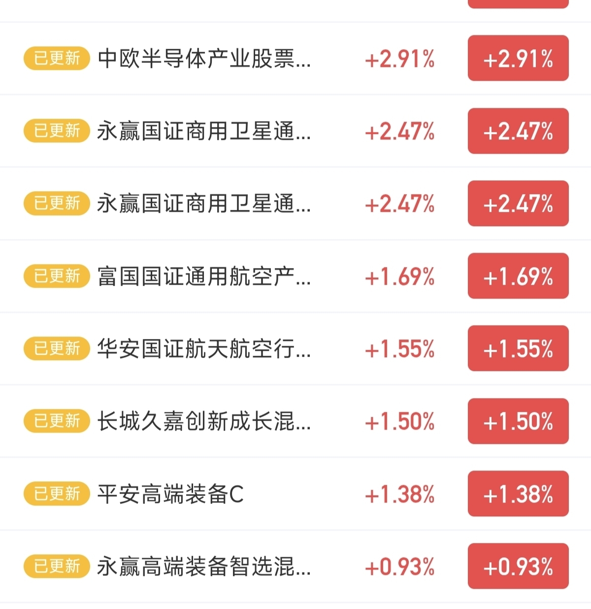中欧半导体产业股票今天上涨了2.91%。主动的科技混合基金。目前主要聚焦商业航天方向。