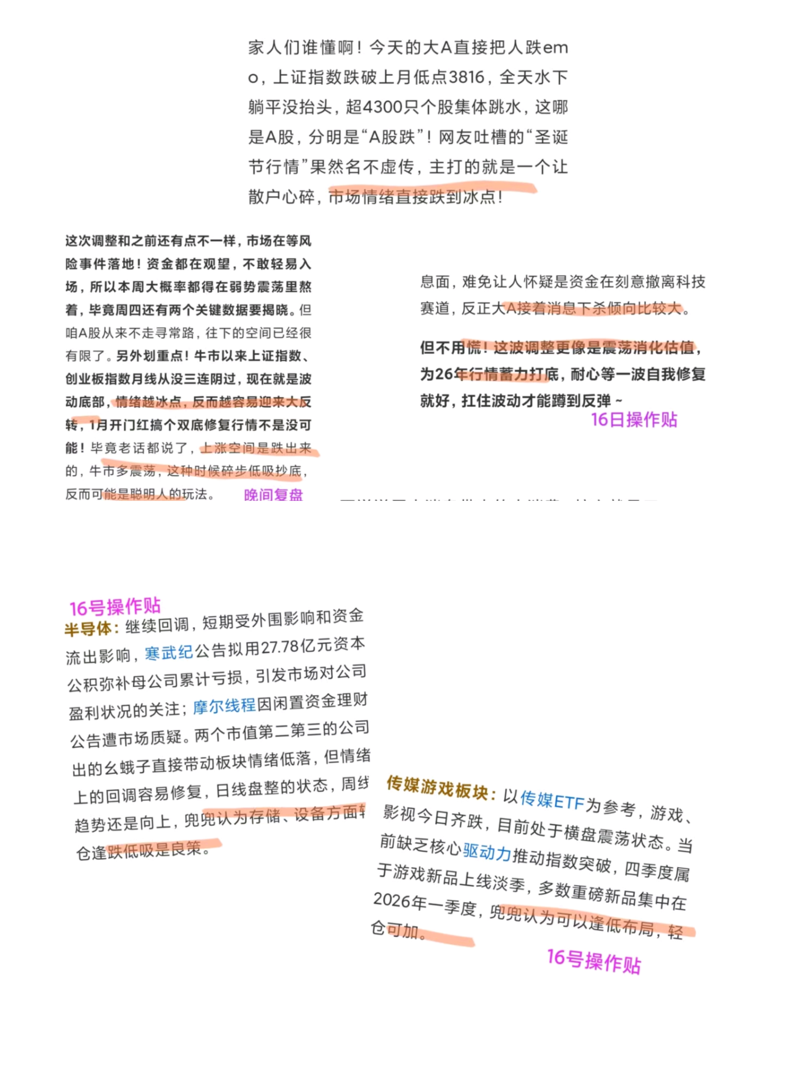 其实兜兜早在12月16号的底部冰点就敲锣打鼓提醒:情绪越冰点,反弹越猛烈!1月搞个开门红+双底修复行情,完全是板上钉钉的事!那时候碎步低吸的,才是真正的聪明人!兜兜天天念叨,春季躁动早就悄悄发酵,周线级别向上就是铁律!当下这点小波动,不过是上涨路上的小水花,格局打开才能稳稳拿住大肉!低吸的宝子现在是不是已经赚得盆满钵满?!