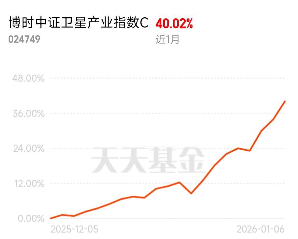 #2026年 你最看好哪些投资赛道?# 2026年开年,卫星产业板块表现抢眼,中证卫星产业指数强势上涨,$博时中证卫星产业指数C$ 也跟随板块表现活跃,昨天涨幅接近3%,一周涨超7%。近期工信部明确将有序开展卫星物联网等新业务商用试验,为行业发展注入强心剂。加上中国航天2025年全年发射次数达到92次历史新高,将超过300颗卫星送入预定轨道,发射次数和入轨数量实现质的提升。随着蓝箭航天科创板IPO获受理,商业航天板块迎来资本化里程碑。博时这只基金作为跟踪卫星全产业链的指数基金,在产业加速发展的背景下,直接受益于政策红利和产业景气度提升的双重驱动。