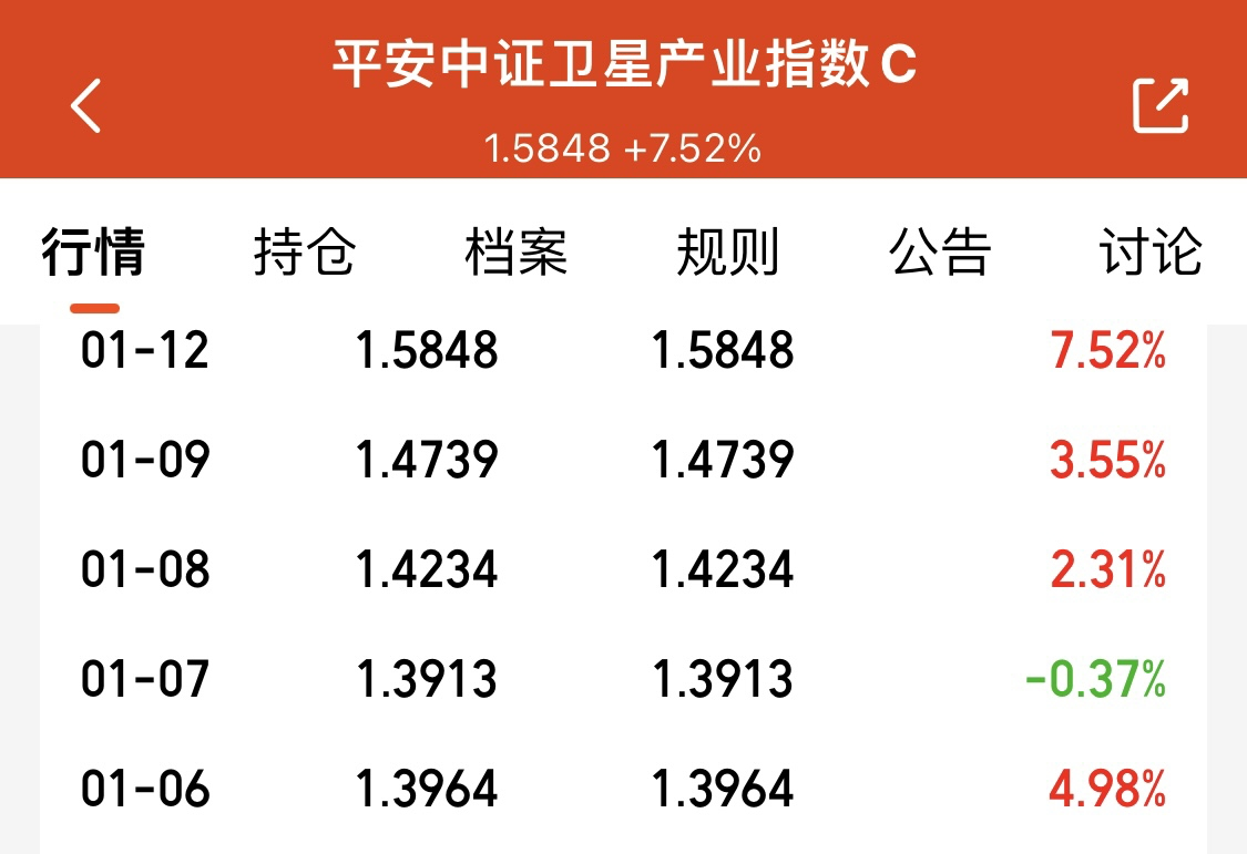 平安卫星产业今天又迎来大涨,净值7.52%,商业航空势不可挡,或成为来主线,继续拿住。看好长期表现。