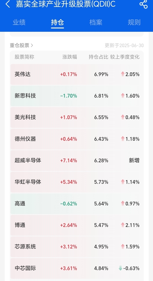 美股今天开盘后三大指数都涨的不错,娜娜涨0.68%,$嘉实全球产业升级股票(QDI)C$3 月涨了26.79%,近6月涨了58.57%,近一年40多个点表现挺稳。它买的美光科技、德州仪器这些科技股,最近在半导体产能规划上有新动态,行业里讨论得挺多。$富国全球消费精选混合(QDII)人民币C$ $天弘纳斯达克100指数发起(QDII)C$ $天弘标普500发起(QDII-FOF)C$