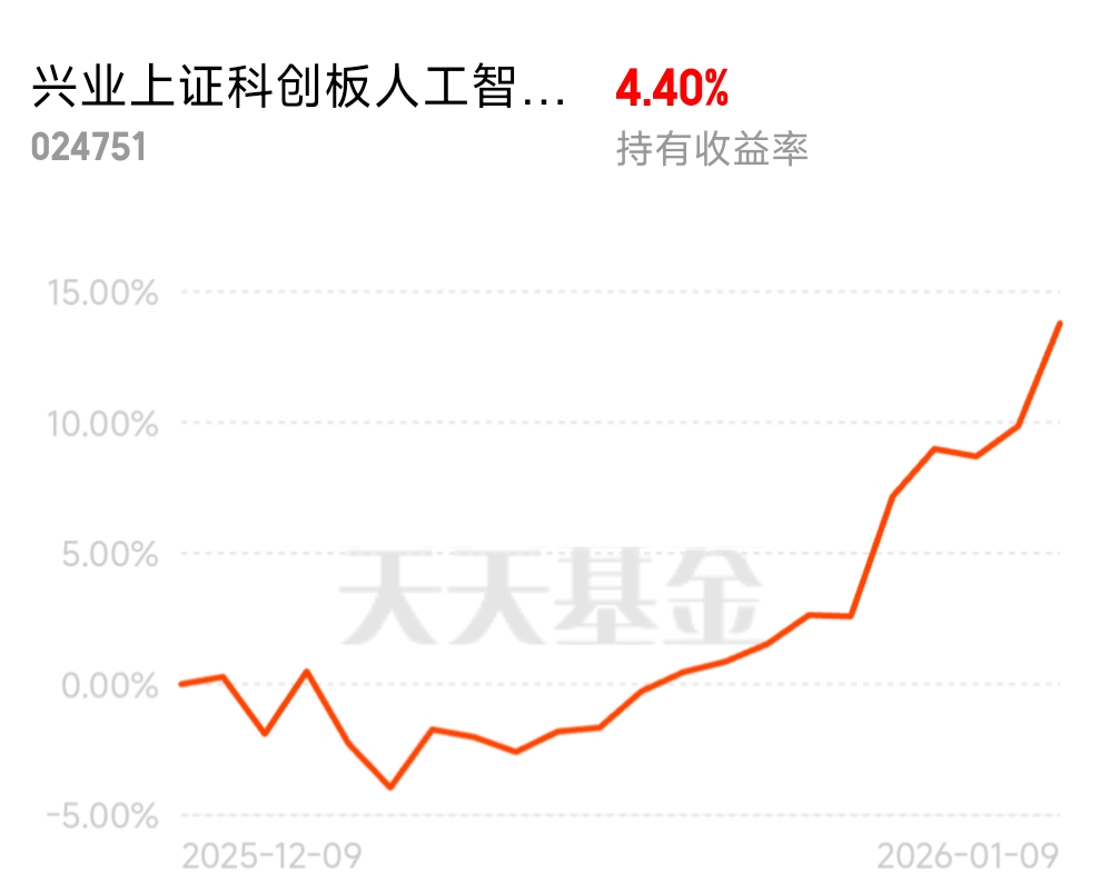 今天真猛$兴业上证科创板人工智能指数C$是真起飞了。