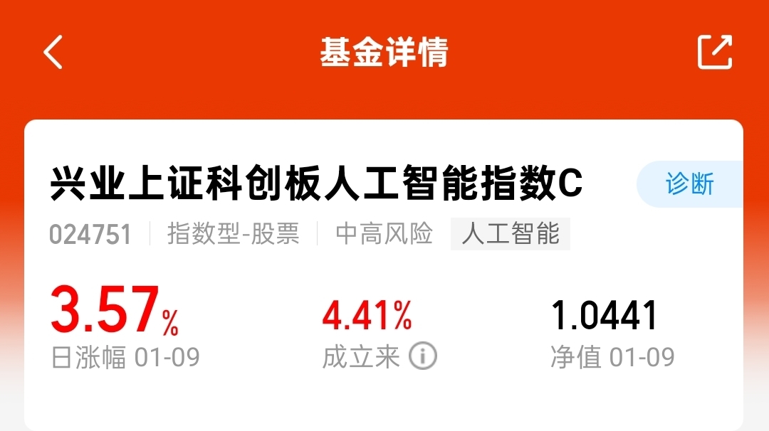 $兴业上证科创板人工智能指数C$ 盘中涨4.28%一个字牛