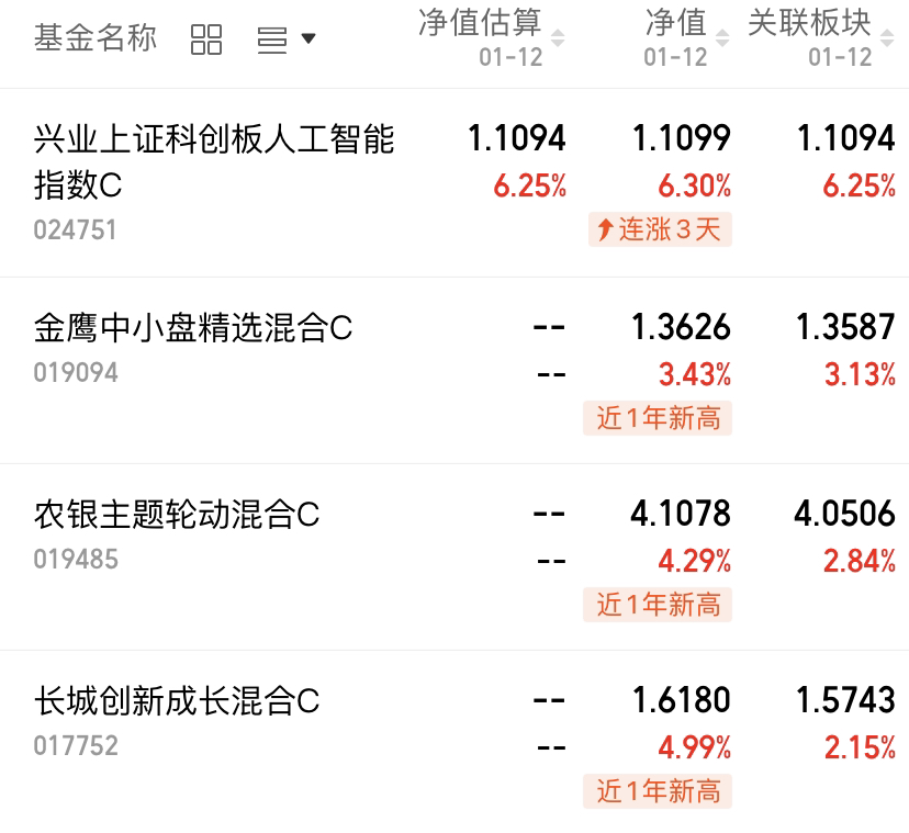 全天成交额直接冲上 3.6 万亿,一举刷新 A 股单日成交额历史新高,较上一日放量 4787 亿元,市场热度直接爆表。资金扎堆发力之下,各板块轮番表现,其中AI 应用端拉升力度强劲,成为带动行情的绝对主力军,$兴业上证科创板人工智能指数C(OTCFUND|024751)$上涨6.3%,$金鹰中小盘精选混合C(OTCFUND|019094)$上涨3.43%,$农银主题轮动混合C(OTCFUND|019485)$上涨4.29%,$长城创新成长混合C(OTCFUND|017752)$上涨4.99%。