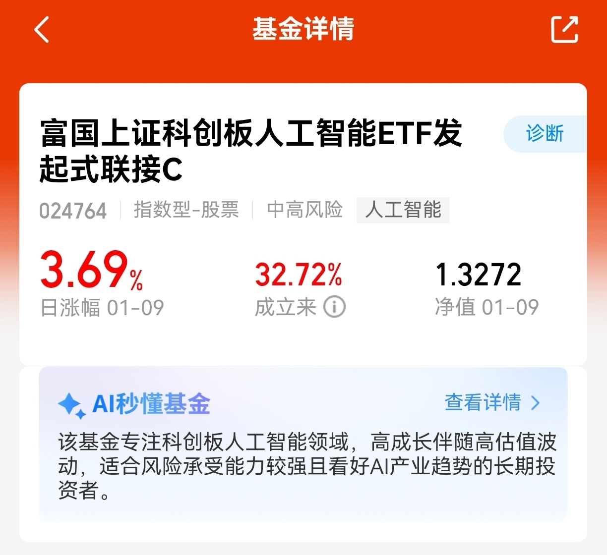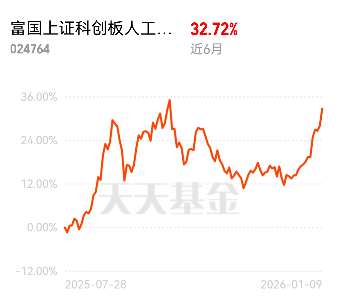 宝子们,这波人工智能表现真不错,特别今天简直太给面子了!$富国上证科创板人工智能ETF发起式联接C$ 反攻3.69%,近6个月上涨32.72%,之前咱们回调的时候我就说,一旦反弹,它可不等人,而且2026年还是科技年,人工智能这爆发力,比别的板块强太多了,网红德邦,复兴伟业都还在跌呢,所以咱格局打开一点。这波26年的长线收益,咱们必须吃到饱!继续拿稳了,这波行情还没完。