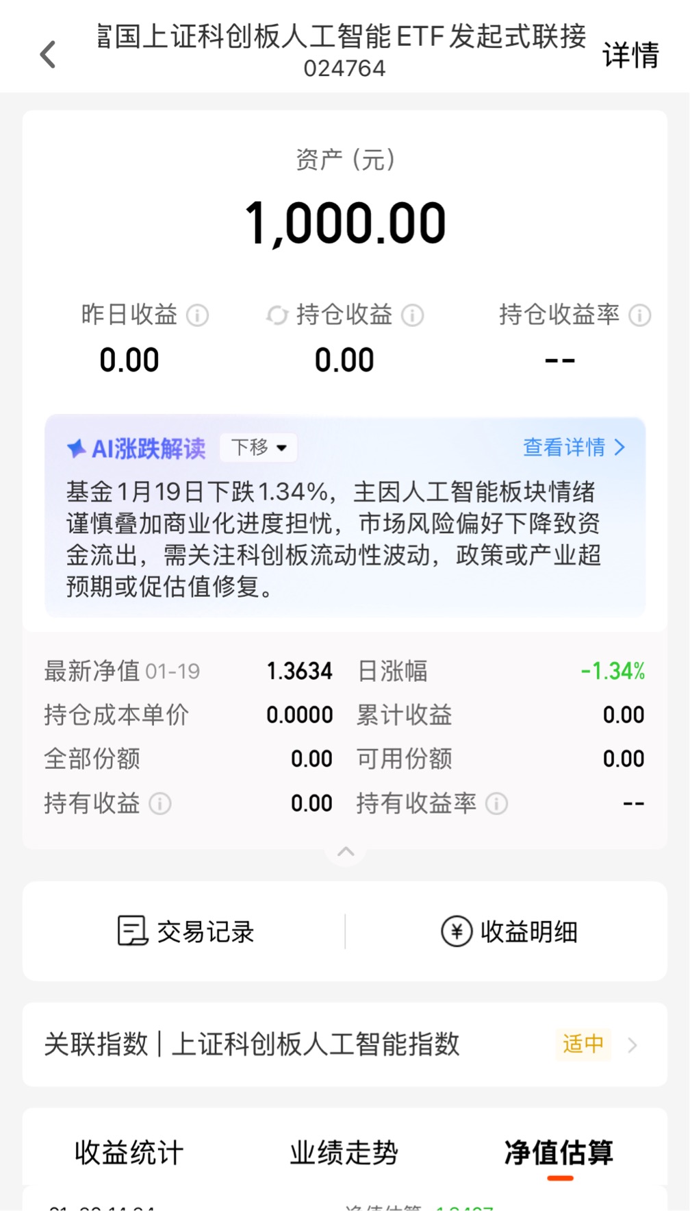 兄弟姐妹们,今天市场开始回调了,上午的跌幅有些大,午后有所收窄,不过现在出现回调比较正常 ,也是比较健康的,趁着下跌,我继续今天加仓1000元富国科创AI联接C(024764)$富国上证科创板人工智能ETF发起式联接C$