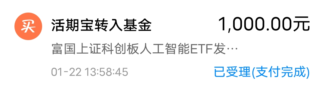 $富国上证科创板人工智能ETF发起式联接C$ (024764)我加仓1000元,科创AI板块近期走出企稳回升态势,今天延续上涨,指数震荡走高,资金正持续向科创人工智能赛道布局,相关标的近5日吸金超1.5亿元,产业端更是利好不断:黄仁勋直言AI领域仍需加码投资,算力需求爆发、国产芯片替代加速,叠加“人工智能+”政策持续落地,行业正从技术突破迈向价值兑现期。现在市场正处于慢牛行情,不过行业赛道走势明显还是有所分化的,选对赛道很重要。科创人工智能长期上行逻辑清晰,政策扶持力度强,资金流动性充足,是目前上行的主线之一,行情回暖后还是会有较大的突破机会,我今天买入1000元。