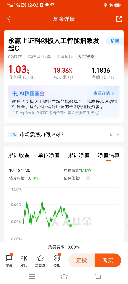 聚焦科创板人工智能主题的$永赢上证科创板人工智能指数发起C$昨晚大涨1.03%。