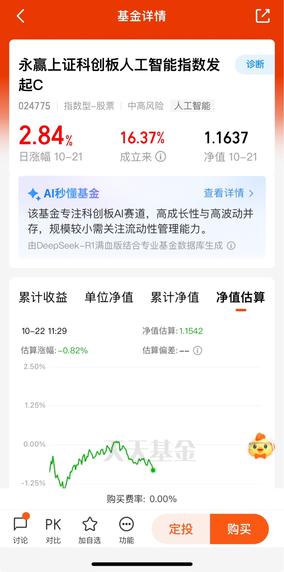 $永赢上证科创板人工智能指数发起C$昨天收2.84%,希望行情稳住哈,继续拉涨起