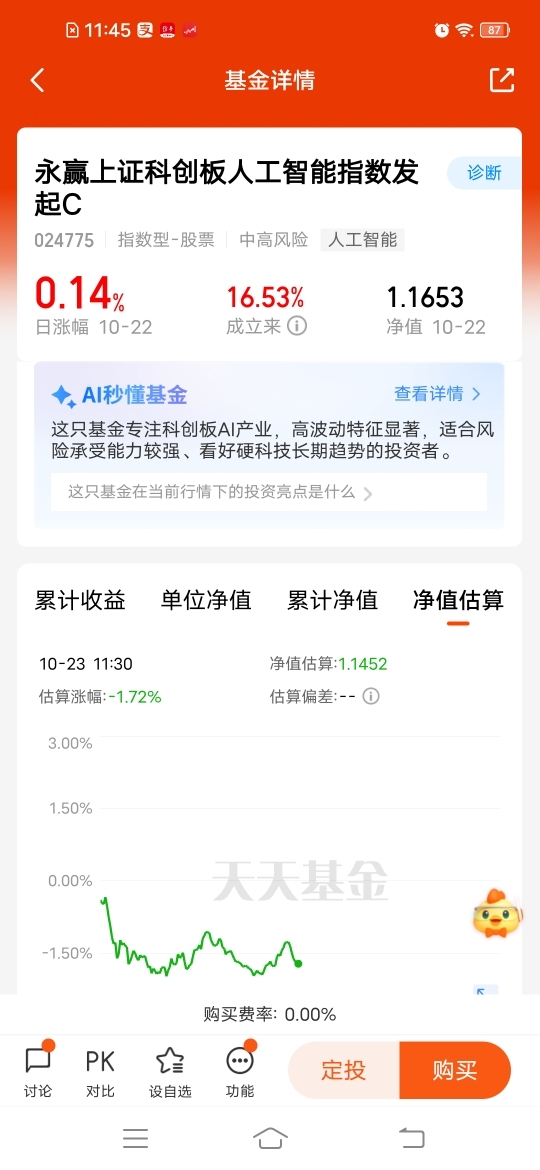 $永赢上证科创板人工智能指数发起C$主打科技主线赛道,趁着波动布局起来,昨天涨幅